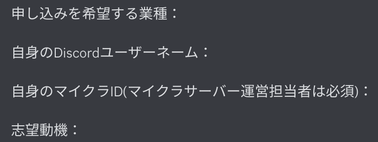 Discordでの申込みについては下記画像のように送信してください(完全一致でなくてもOKです)